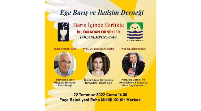 Foça Belediyesi Reha Midilli Kültür Merkezi’nde, 22 Temmuz Cuma günü saat 16.00’daki sempozyum Egebarış Derneği Başkanı Bülent Tanık’ın yapacağı tanıtımın ardından başlayacak.