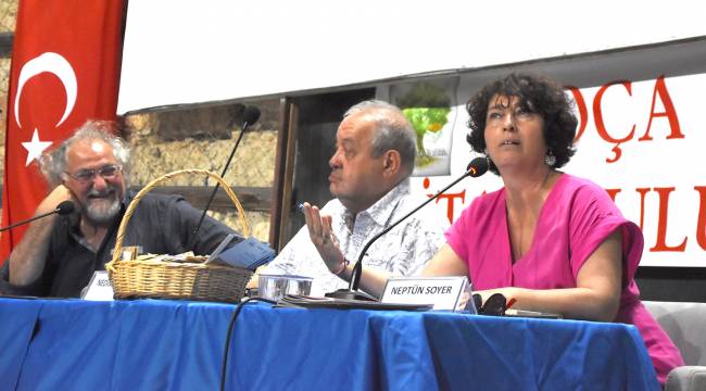 Beşkapılar Kalesinde, 8 Temmuz Cumartesi günü gerçekleşen söyleşiye; İzmir Köy Koop Birliği Yönetim Kurulu Başkanı ve Slowfood Teos Birliği Başkanı Neptün Soyer, Slow Food hareketinin Türkiye’deki kurucu liderlerinden Mutfak Araştırmacısı Gazeteci Yazar Nedim Atilla ve Arkeolog Gıda Mühendisi Yazar Doç. Dr. Ahmet Uhri konuşmacı olarak katıldı.