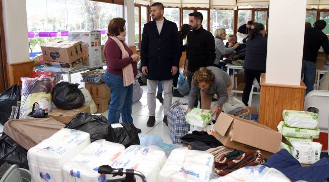 Foça Belediyesi Acil Durum Koordinasyon Birimi öncülüğündeki sivil toplum kuruluşları üyeleri ve yardımseverlerin temin ettiği acil ihtiyaç malzemeleri, İzmir Büyükşehir Belediyesi koordinasyonunda deprem bölgelerine ulaştırılıyor.