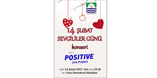 ‘Positive Live Project’in sahne alacağı konser, Foça Demokrasi Meydanı’nda, 14 Şubat 2017 Salı günü (bu akşam) gerçekleşecek.