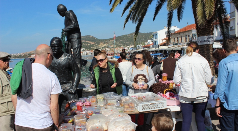Okul bütçesine maddi katkı sağlamak için yapılan kermeste okul öğrenci velilerinin ürettikleri yiyecekler , hediyelik eşyalar, takılar pazar günü Foça'ya ziyarete gelen misafirlerce kapışıldı.
