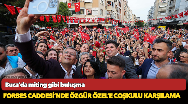Miting havasında geçen buluşmada coşkulu kalabalığa seslenen Özgür Özel, “Buca’da Forbes Caddesi’ne gelmek, esnaf gezmek siyasettir. Kafeteryada gençlerle sohbet etmek siyasettir. Bir kahvenin önünde toplanan kalabalığa hitap etmek iyi siyasettir. Büyük bir kalabalığın önünde bir tabureye çıkmak iddialı bir siyasettir. Ama Buca’da, hafta içinde, bir akşamüstü Forbes Caddesi’ni alıp alabildiğine doldurmak, orada miting yapmak iktidardır, iktidar” diye konuştu.