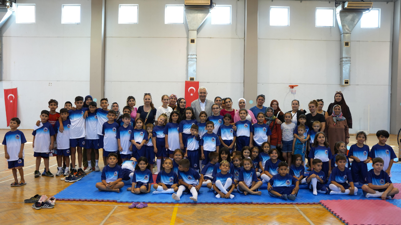 Kemalpaşa Belediye Başkanı Mehmet Türkmen, belediye bünyesinde düzenlenen spor kurslarında eğitim gören kursiyerlere forma dağıtımı gerçekleştirdi. Ulucak Çok Amaçlı Spor Salonu ve Mehmet Ali Özüdoğru Spor Tesisleri’nde yapılan dağıtım törenlerini minik sporcular ve ailelerin katılımıyla gerçekleşti. Başkan Türkmen, spor malzemelerini bizzat kursiyerlere teslim ederek çocuklarla yakından ilgilendi, ailelerle sohbet etti ve hatıra fotoğrafı çektirdi. Mavi-beyaz renklerde, üzerinde Kemalpaşa Belediyesi logosu bulunan formalar beğeni topladı. Binlerce Kemalpaşalı’nın faydalandığı spor kursları, futbol, tenis, voleybol, cimnastik, pilates, güreş gibi birçok branşta belediyenin öz kaynakları ve eğitmenleri ile sürdürülüyor.