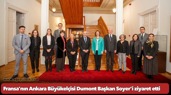 Fransa’nın Ankara Büyükelçisi Isabelle Dumont, İzmir Büyükşehir Belediye Başkanı Tunç Soyer’i Egemenlik Evi’ndeki makamında ziyaret etti. Ziyarette İzmir Büyükşehir Belediyesi Başkan Danışmanı Onur Eryüce, İzmir Büyükşehir Belediyesi Dış İlişkiler ve Turizm Dairesi Başkanı Gökçe Başkaya, Fransa’nın İstanbul Başkonsolos Yardımcısı Margarida Bobenrieth, Büyükelçilik Siyasi Danışmanı Kilian Vivien, Fransız Kalkınma Ajansı temsilcisi Marine Karcher, Fransa Büyükelçiliği Ticaret Müşavirliği Temsilcisi Laure Joya, Fransa’nın İzmir Fahri Konsolosu Bernard Arkas ve Zeliha Toprak yer aldı.