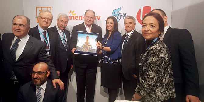 FTI Group CEO’su Dietmar Gunz’a plaketini İzmir standında bir araya gelen Kültür ve Turizm Bakanlığı Müsteşar Yardımcısı Baki Alkaçar, İzmir Vali Yardımcısı Cumhur Güven Taşbaşı ve İzmir İl Turizm Müdür Vekili Murat Karaçanta, Meeting Point CEO’su Roula Jouny’e de plaketini TÜROFED Başkanı Osman Ayık, TÜROFED Genel Sekreteri Gülçin Güner ile TÜROFED Başkan Yardımcısı ve ETİK Başkanı Mehmet İşler ile Meeting Point Oteller Koordinatörü ve ETİK Yönetim Kurulu Üyesi Gökhan Angın ile birlikte verdi. Gunz ve Jouny’e 2018’in Truva yılı ilan edilmesi nedeniyle Truva figürlü birer tabak armağan edildi.