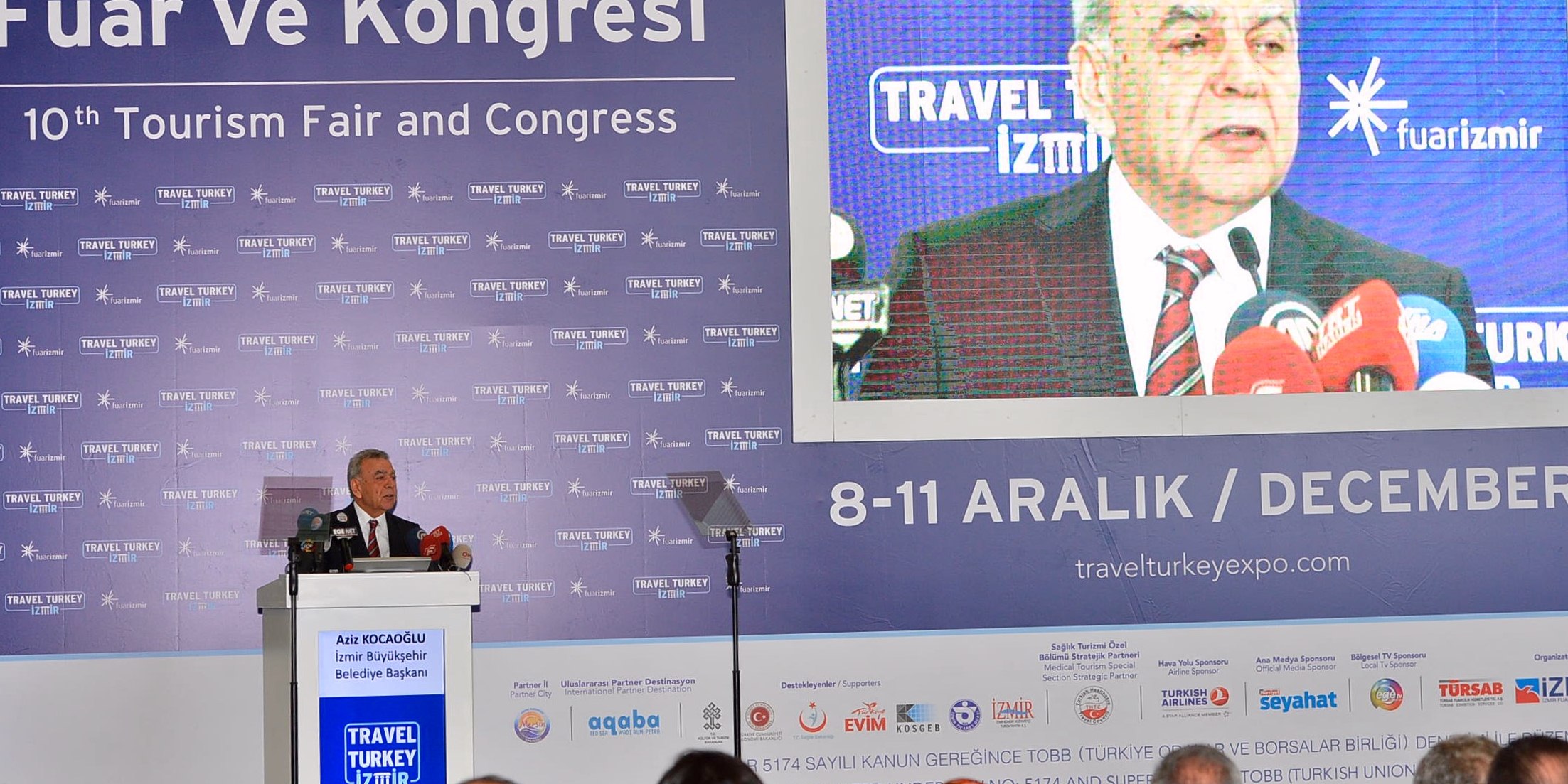 İzmir Büyükşehir Belediye Başkanı Aziz Kocaoğlu, geçen yıl 1008 katılımcının yer aldığı fuarın bu yıl yüzde 7.5 büyümeyle 1179 katılımcıya ulaştığını söyledi. Travel Turkey İzmir ile birlikte eşzamanlı olarak Alman Stutgart Messe firmasının düzenlediği Ibatech Fuarı ve Uluslararası Gastronomi Kongresi'nin de gerçekleştirildiğini belirten Başkan Kocaoğlu, şunları kaydetti:
