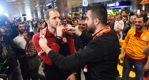 Türk Hava Yolları’na ait uçakla Las Palmas’dan İstanbul’a gelen Galatasaraylı basketbolcuları Atatürk Havalimanı’nda bir grup taraftar karşıladı. Taraftarların tezahüratlarına eşlik eden basketbolcular, fotoğraf çektirme isteklerini de kırmadı.