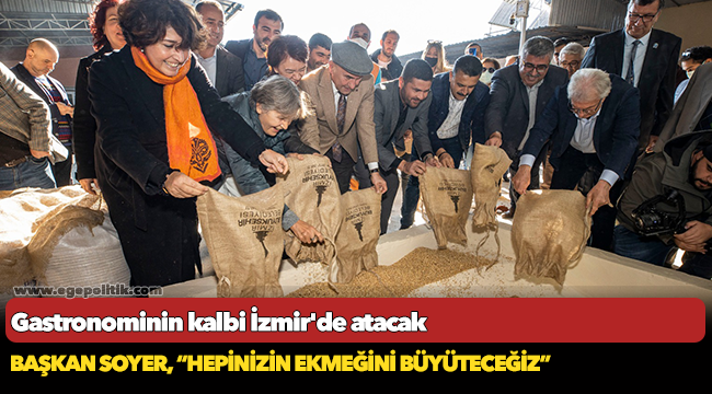 'Sen uğraşma, ver şirkete mahsulü, sat yok pahasına, gerisine karışma şeklinde yürüyen tarımdaki bu devir İzmir'de kapandı' diyen İzmir Büyükşehir Belediye Başkanı Tunç Soyer, “Kimse kusura bakmasın. Gerçekleştirdiğimiz desteklerle, alımlarla üreticimiz ürününden para kazanıyor. Artık İzmir Büyükşehir Belediyesi var. 'Başka Bir Tarım Mümkün' vizyonumuz doğrultusunda iki buçuk yıldır çalışmalarımızı sürdürüyoruz. Arkadaşlarım 24 ilçemizin meralarını tek tek gezdi. 4160 çobanla tanıştı, sorunlarını dinledi. İzmir’in, Türkiye’de bir eşi daha olmayan, çoban haritasını çıkardı. Meralarımızda şimdiye kadar 110 bin 430 keçi, 352 bin 185 koyun ve 15 bin 489 kara sığır tespit etti. Diğer yandan 10 yıl önce tükenmek üzere olan karakılçığın, saz çavdarının, mürdümük ve gambilyenin tohumlarını yeniden ortaya çıkardık. Bir avuçla başladık, binlerce dönüm araziye yetecek kadar tohum elde ettik ve çiftçilerimizle paylaştık. Bu tohumları üreten çiftçimize piyasa değerinin üç katından alım garantisi veriyoruz. Vermeye de devam edeceğiz. Tüm bunları neden yaptık ve yapacağız? Çünkü bu memleketi çok seviyoruz. Ne köyde, ne de şehirde hiçbir çocuk yatağa aç girmesin istiyoruz. Herkesin doğduğu yerde doyma hakkı olduğunu kabul ediyoruz” şeklinde konuştu.