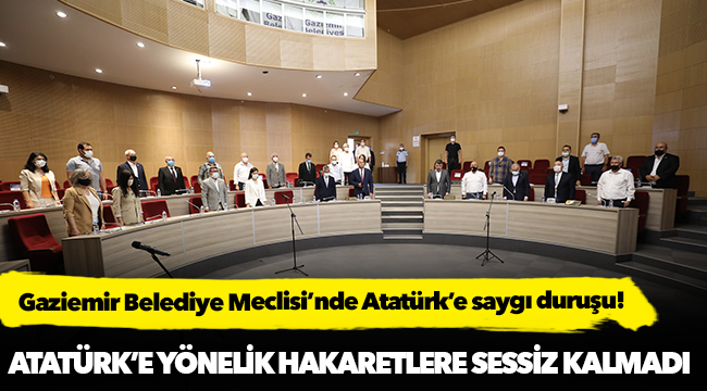 Ayasofya Camii’nde gerçekleştirilen programda Ulu Önder Mustafa Kemal Atatürk’ü hedef alan eski imam Mustafa Demirkan’ın hakaretlerine tepki gösteren Gaziemir Belediyesi meclis üyeleri, bugün yapılan meclis toplantısında, CHP Grup Başkan Vekili Ünal Işık’ın önerisiyle Mustafa Kemal Atatürk’ün manevi huzurunda 1 dakikalık saygı duruşunda bulundu.