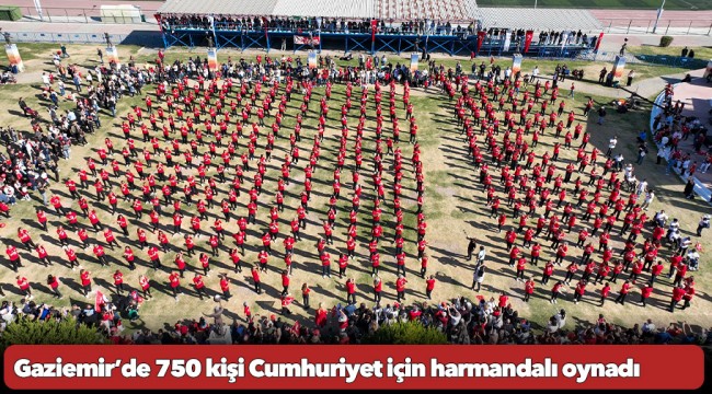 Gaziemir Belediyesi’nin 29 Ekim Cumhuriyet Bayramı’nda düzenlediği Harmandalı Gösterisi’nde 750 Gaziemirli, Cumhuriyet’in 101. yılını coşkuyla kutlamak için bir araya geldi. Festival Alanı’nda düzenlenen etkinlikte Gaziemir Belediye Başkanı Ünal Işık, eşi Deniz Işık, CHP Gaziemir İlçe Başkanı Kasım Özkan, belediye meclis üyeleri ve 750 Gaziemirli harmandalı oynayarak bayram coşkusunu yaşadılar. Cumhuriyet sevdalısı Gaziemirlilerin harmandalı gösterisi izleyenlere görsel şölen yaşattı.