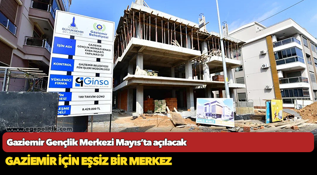 İzmir Büyükşehir Belediyesi ve Gaziemir Belediyesi'nin ortak hizmet projesi olan Gaziemir Gençlik Merkezi’nin yapım çalışmaları hızla devam ediyor. İzmir Büyükşehir Belediye Başkanı Tunç Soyer’in seçim vaatleri arasında bulunan Gençlik Merkezi Mayıs ayında açılacak. Yaklaşık 6,5 milyon liralık yatırımla hayata geçirilecek Gaziemir Gençlik Merkezi’nin yüzde maliyetinin yüzde 70’i İzmir Büyükşehir Belediyesi tarafından karşılanıyor. Merkez, gençlerin kişisel ve entelektüel gelişimlerini desteklemenin yanı sıra beceri kazanmalarına katkı sunacak.