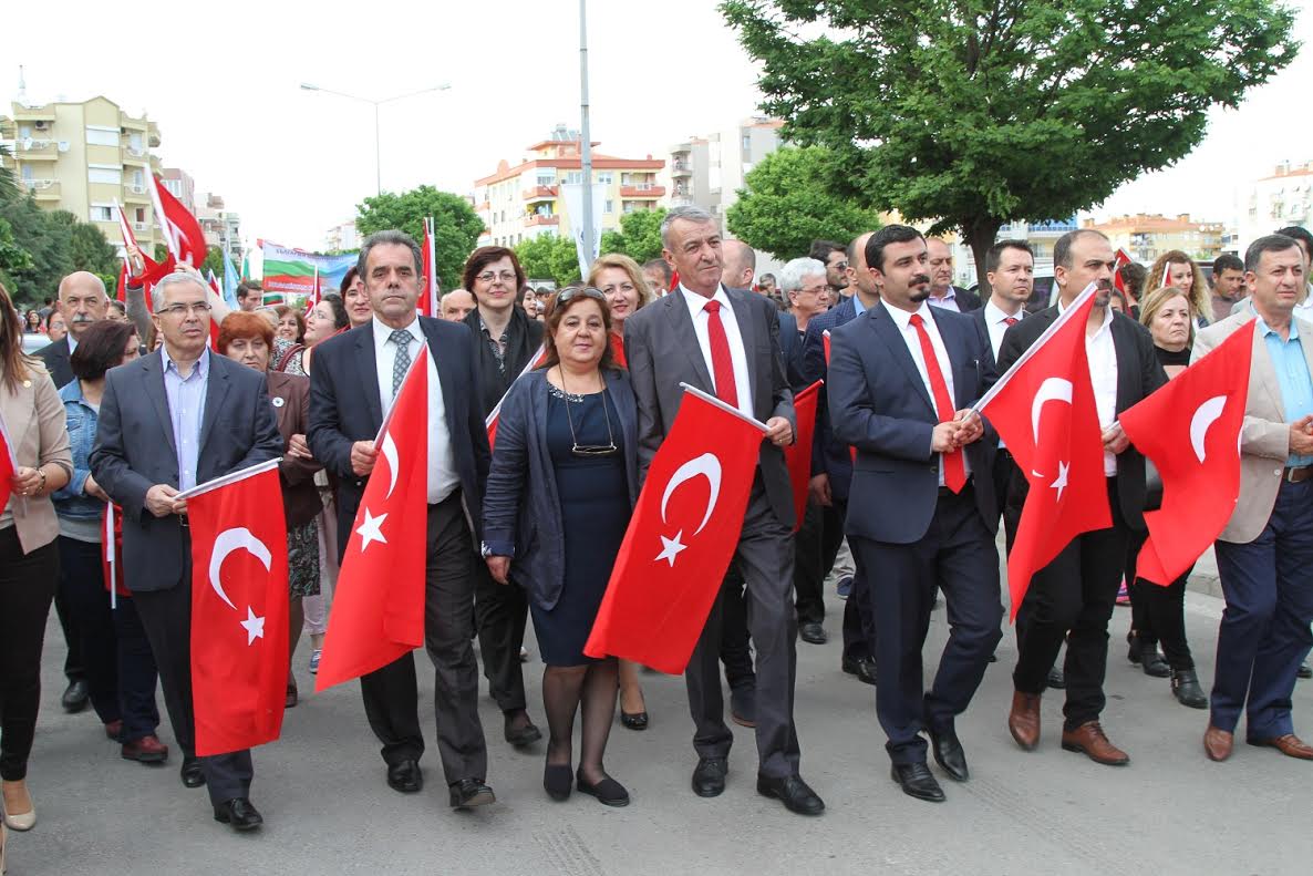 Gaziemir Belediye Başkanı Halil İbrahim Şenol’un eşi birsen Şenol ile birlikte katıldığı korteje, CHP PM Üyesi Özkan Yıldız, Kaymakam Yaşar Dönmez, CHP Gaziemir İlçe Başkanı Umut Tekin, meclis üyeleri, yabancı ülke temsilcileri ile çok sayıda Gaziemirli katıldı.