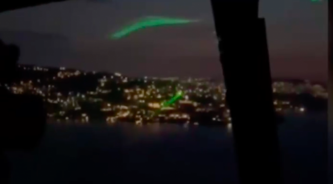 NTV'de yer alan habere göre, pilota geçici görme kaybı yaşatarak kazaya neden olabilecek olay, helikopter içinden kaydedildi.