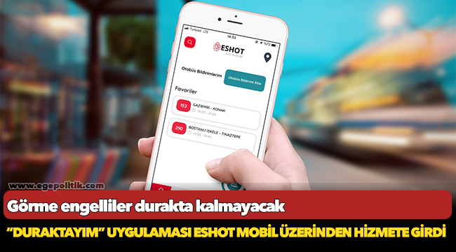 İzmir Büyükşehir Belediyesi ESHOT Genel Müdürlüğü, görme engellilere, ulaşımda kolaylık sağlayacak yazılım geliştirdi. Engelli İzmirim Kart sahibi görme engelli yolcuların, kimseden yardım almadan otobüslere biniş yapabilmesini sağlayacak “Duraktayım” uygulaması, ESHOT Mobil üzerinden hizmete girdi.