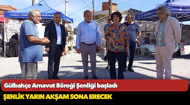Urla'nın geleneksel renkli etkinliklerinden Gülbahçe Arnavut Böreği Şenliği başladı. İzmir Köy Koop Birlik Başkanı ve İzmir Büyükşehir Belediye Başkanı Tunç Soyer'in eşi Neptün Soyer'in katılımıyla açılan şenlik yarın akşam sona erecek.