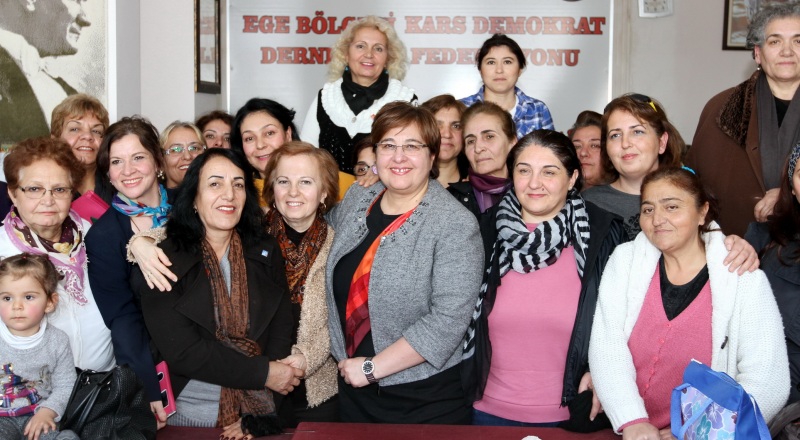 Konak Belediye Başkanı Sema Pekdaş, Cumhuriyet Halk Partisi (CHP) Konak İlçe Kadın Kolları’nca Gültepe’de düzenlenen toplantıda semtte yaşayan kadınlarla bir araya geldi. Ege Bölgesi Kars Demokrat Dernekler Federasyonu’nun (Ege KARSFED) ev sahipliğinde yapılan toplantıya CHP İzmir İl Kadın Kolları Başkanı Nurşen Balcı, CHP Konak İlçe Kadın Kolları Başkanı Filiz Sezer, partili ve semt sakini kadınlar katıldı. Ege KARSFED’in dernek lokalinde gerçekleştirilen toplantıda ilk olarak Gültepeli kadınları dinleyen Başkan Pekdaş, “Kadınların yaptığı her iş anlamlı ve güzel iştir. Birbirimize güç vermek açısından da yanınızda olmaktan mutluyum. Hep birlikte birbirimizin gücüne güç katalım” dedi. Kısıtlı bütçeye rağmen halka en iyi hizmeti üretmeye çalıştıklarını dile getiren Başkan Pekdaş, Gültepe’nin kanayan yarası olan imar sorununun çözümü için başlattıkları çalışma hakkında da bilgi verdi.