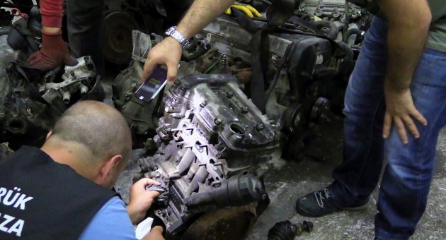 İzmir'in Karabağlar ilçesinde, lüks markalara ait gümrük kaçağı 35 otomobil motoru ele geçirildi