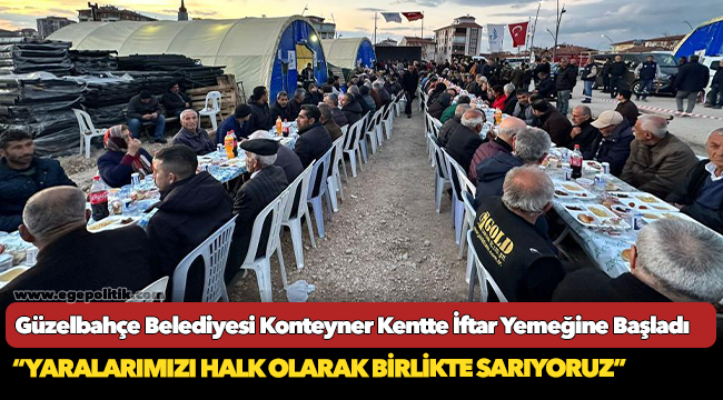 Belediye kendi imkânlarıyla Ramazan ayı boyunca her mahallede on gün boyunca 400 kişiye iftar yemeği verecek. Depremin etkilediği 11 ilden gelen vatandaşların Güzelbahçe’ye yerleştiğini söyleyen Güzelbahçe Belediye Başkan Vekili Kazım Çam, "Zor bir süreçten geçiyoruz. Deprem ülkemizde büyük bir yıkıma neden oldu. Yaralarımızı halk olarak birlikte sarıyoruz. Malatya Yeşilyurt İlçesi Aşağıbağlar mahallesinde kurmuş olduğumuz konteyner kentte sahur ve iftar yemeği veriyoruz. Bunun dışında konteyner kentte kalan oruç tutmayan vatandaşlarımıza da yine sabah, öğlen ve akşam yemeklerini vermeye devam ediyoruz. CHP Genel Başkan Yardımcımız ve Malatya Milletvekilimiz Sayın Veli Ağbaba ilk iftar yemeğinde aramızda oldu. Güzelbahçe’de de paylaşımı ve dayanışmayı güçlendirmek adına iftar soframızda ihtiyaç sahibi vatandaşlarımıza ve iftar vakti evine yetişemeyen vatandaşlarımıza gönül rahatlığı içinde, evlerinde oruç açıyormuş gibi sıcak bir ortam hazırlıyoruz. İftar sofrasında, belediye olarak vatandaşlarımızı kucaklayabilmenin mutluluğunu yaşadık. Bu sene de Belediyemiz her mahallede iftar sofrası kuracak. Geçtiğimiz yıllarda tek bir yerde iftarımızı açıyorduk. Bu yıl da her mahallede yapacağız. Biz mahallelimize misafir oluyoruz, yemeğimizi paylaşıyoruz. Bu yıl depremzede vatandaşlarımızı ilçemizde misafir ediyoruz. Onlarla soframızı paylaşacağız. Yan yana dayanışma içerisinde olacağız. Her mahallemizde yapacağımız bu birlik ve beraberlik buluşmalarında halkımızı bekliyoruz” diye konuştu.