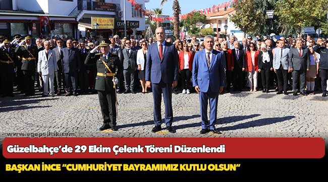 Güzelbahçe Atatürk Mahallesi Cumhuriyet Meydanı’nda Atatürk’ün huzuruna çelenk sunuldu. Çelenk törenine Güzelbahçe Kaymakamı Bülent Bayraktar, Garnizon Komutanı Topçu Albay Rizvan Çiper, Güzelbahçe Belediye Başkanı Mustafa İnce, siyasi partilerin başkan ve temsilcileri, STK Başkan ve temsilcileriyle, kurum müdür ve amirleri, öğretmen ve öğrenciler katıldı.