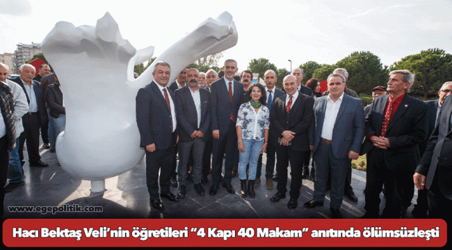 İzmir Büyükşehir Belediyesi, insan sevgisi, hoşgörü, barış, kardeşlik, doğruluk, güzel ahlak, adalet, kadın-erkek eşitliği gibi öğretileriyle dünyaya mal olmuş Hacı Bektaş Veli’yi ve felsefesini Bornova Aşık Veysel Rekreasyon Alanı’nda ölümsüzleştirdi. 2021 yılında UNESCO tarafından Hacı Bektaş Veli yılı ilan edilmesi üzerine geliştirilen proje kapsamında, Alevi Bektaşi inancında insan-ı kâmil olma yolundaki “4 Kapı 40 Makam” öğretisi heykelde hayat buldu. Heykelin açılış törenine İzmir Büyükşehir Belediye Başkanı Tunç Soyer, Hacıbektaş Belediye Başkanı Arif Yoldaş Altıok, Alevi Bektaşi Federasyonu Genel Başkanı Mustafa Aslan, Alevi Bektaşi dernek temsilcileri, sivil toplum kuruluşu temsilcileri ve çok sayıda yurttaş katıldı.