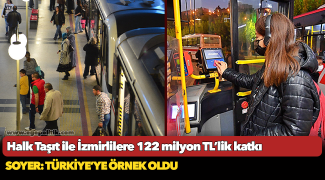 İzmir Büyükşehir Belediye Başkanı Tunç Soyer’in, Mart 2019’da göreve gelir gelmez başlattığı Halk Taşıt uygulaması kapsamında, belirli saatlerde tüm toplu ulaşım araçlarında yüzde 50 indirimli hizmet veriliyor. Uygulamanın hayata geçirildiği Nisan 2019’dan bu yana vatandaşların cebinde kalması sağlanan toplam tutar 122 milyon TL’yi buldu.