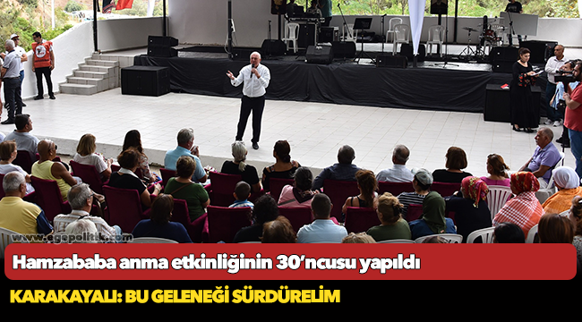 Kemalpaşa Belediye Başkanı Rıdvan Karakayalı konuşmasında, ‘’Bu yıl 30’ncusunu düzenlediğimiz Hamzababa Anma Etkinliği’ne katılan tüm canlarımızı selamlıyorum. Organizasyonda emeği geçenlere teşekkür ediyorum. Bu geleneği hep beraber yaşatmalıyız diye düşünüyorum. Gelin canlar bir olalım, iri olalım, diri olalım. Hepinizi saygıyla selamlıyorum’’ ifadelerine yer verdi.