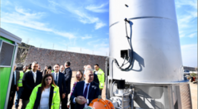 Harmandalı Düzenli Depolama Alanı'ndaki çöplerden elektrik enerjisi üretebilmek amacıyla kurulacak Biyogaz Tesisi'ni ziyaret eden İzmir Büyükşehir Belediye Başkan Aziz Kocaoğlu, yapılan çalışmalarla ilgili bilgi aldı.