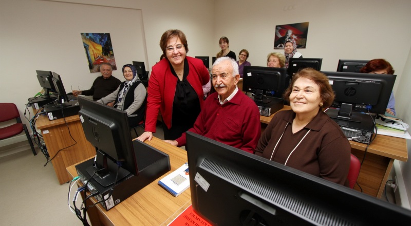 Konak Belediyesi’nin Ziya, Zişan, Saadet Aytulun Kardeşler İleri Yaş Sağlıklı Yaşam Merkezi’ne gelen 55 yaş ve üstü 250 kursiyerler bilgisayardan ebruya, iğne oyasından satranca kadar birçok kurstan ücretsiz faydalanabiliyor. Merkezde en yoğun talebi gören kursların başında bilgisayar kursu yer alıyor. İlerlemiş yaşlarına rağmen teknolojinin gerisinde kalmayı istemeyen kursiyerler, torunlarıyla daha iyi bir iletişim kurabilmek için eğitmenleri eşliğinde dersleri aksatmadan takip ediyor. Yaşam enerjilerinden hiç bir şey kaybetmeyen kursiyerlerin sıkılmadan geldikleri merkezde kurulan Türk Sanat Müziği ve Halk Müziği koroları da büyük ilgi görüyor. İlk konserini bu yılın başında veren ‘Bizim Sesimiz Korosu’ bünyesinde yer alan kursiyerler provaları kaçırmıyor. Merkezde kursların yer aldığı odaların yanı sıra dinlenme ve okuma odaları da bulunuyor. Gün boyu sağlık personelinin de hazır bulunduğu merkezde iki yataklı bir de istirahat odası yer alıyor. Tüm kursiyerlerin aylık sağlık taramasından geçtiği merkezde, mart ayından itibaren de her hafta çarşamba ve cuma günleri kanser taraması yapılmaya başlanacak.
