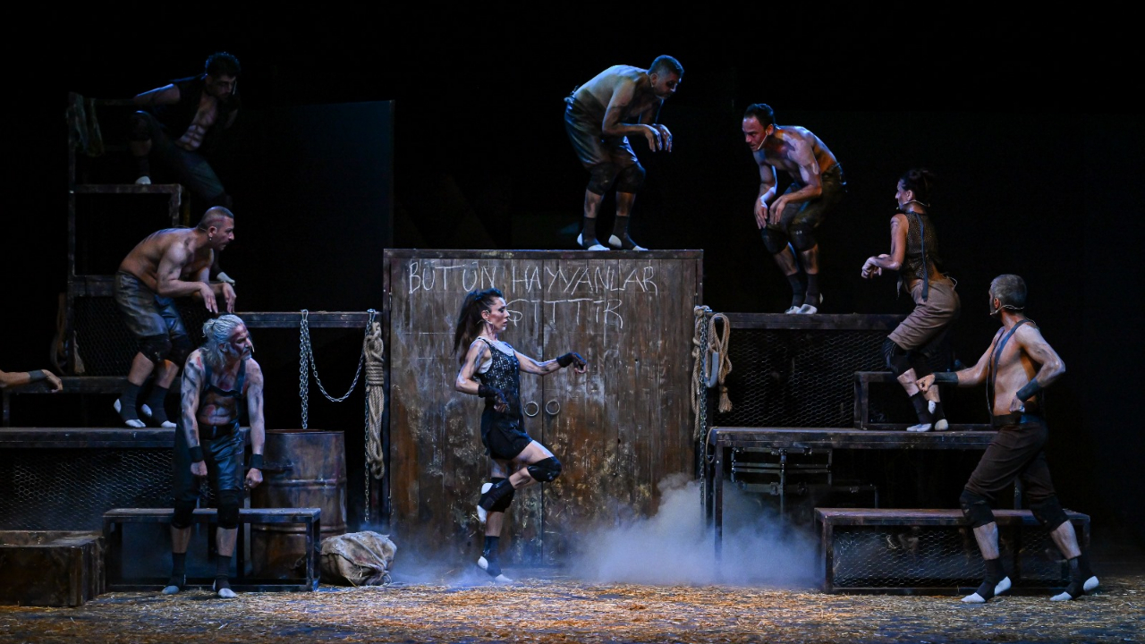 Bu yıl 94’üncüsü düzenlenen İzmir Enternasyonal Fuarı’nda ücretsiz Açık Hava Tiyatrosu etkinlikleri Oyun Atölyesi’nin “Hayvan Çiftliği” oyunu ile başladı. Uyarlamasını Zerrin Akdenizli’nin yaptığı, yönetmenliğini Barış Erdenk’in üstlendiği oyunda; Muharrem Özcan, Umut Temizaş, Aylin Kontente, Eser Karabil, Şirin Kılavuz, Ezgi Coşkun, Ayhan Bekdemir, Beran Kotan, Ulaş Akşit, Ramazan Ülkü Turan Bölükbaşı ve Ali Tepe sahne aldı. Gürkan Çakıcı’nın müzikleri, Kemal Yiğitcan’ın ışık tasarımı ve Asya Başkan’ın kostümleriyle zenginleşen yapım, izleyiciyi yalnızca oyuncuların sahne üstündeki performansıyla değil atmosferiyle de etkiledi. Orwell’in politik hicvi olan “Hayvan Çiftliği”, hayvanların eşitlik ve özgürlük talepleriyle başlattıkları isyanın, kısa sürede totaliter bir rejime dönüşmesini anlatıyor.