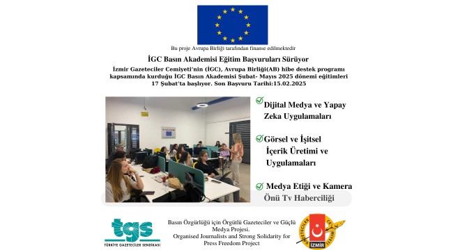 İzmir Gazeteciler Cemiyeti (İGC)’nin ‘Basın Özgürlüğü için Örgütlü Gazeteciler ve Güçlü Dayanışma Projesi’ kapsamında kurulan İGC Basın Akademisi eğitimleri başlıyor.