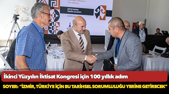 İzmir Büyükşehir Belediye Başkanı Tunç Soyer, Şubat 2023’te “Geleceğin Türkiyesi’ni inşa ediyoruz” sloganıyla 100 yıl sonra yeniden kentte düzenlenecek İkinci Yüzyılın İktisat Kongresi için yapılan ikinci paydaş buluşmaları kapsamında Çiftçi Grubu Teknik Çalıştayı’na katıldı. İşçi, tüccar, sanayici ve esnaf grubunun uzmanlarının ardından İzmir Tarımı Geliştirme Merkezi’nde çiftçi grubunun uzmanlarıyla bir araya gelen Başkan Soyer, İkinci Yüzyılın İktisat Kongresi’nin önemine değinerek “Neden İzmir’in geleceğin aydınlık Türkiyesi’ne umut olduğunu göstereceğiz” diye konuştu.