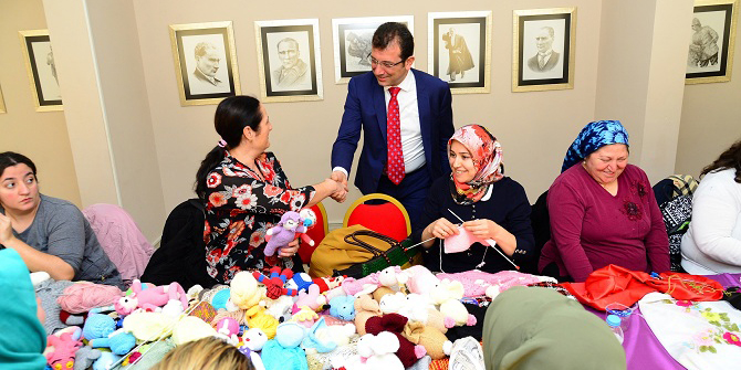 Beylikdüzü Belediye Başkanı Ekrem İmamoğlu, belediye kurslarından yararlanan kadınlarla buluştu. El nakışı, örgü ve telkari kursiyerleriyle sohbet eden İmamoğlu, el emeği ürünleri inceledi, “Bu ülkenin, bu milletin sizin göz nurunuza ihtiyacı var. Kadın emeğinin olduğu yerde iyilik olur.” diye belirtti.