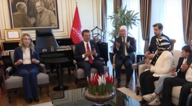 İmamoğlu’nun makamında göreve başlar başlamaz ailesiyle imam eşliğinde dua ettiği görüntülere değinilen haberde “Atatürk resminin önünde oturup sessizce dua etti” denildi.