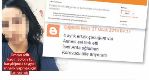 Siteye ilan verenlerden biri de isminin Ümran olduğunu söyleyen bir kadın. 50 bin TL karşılığında taşıyıcı annelik yapmak için ilan veren Ümran'a sitede yayınladığı telefon numarasından ulaşıyoruz. 3 çocuk annesi olduğunu ve 2 yıl önce eşinden ayrıldığını ifade eden Ümran, geçim sıkıntısı yaşadığı için taşıyıcı annelik yapmaya karar verdiğini anlatıyor: "Daha önce taşıyıcı annelik yapmadım ama çocuk doğurma konusunda tecrübeliyim. 10 ve 7 yaşlarında 2 oğlum ve 7 aylık bir bebeğim var. Kararım kesin ve hiçbir şekilde geri dönmeyeceğim. Bu işin sonunda hem siz hem de ben mutlu olurum. 50 bin TL ücret istediğini söyleyen kadınla pazarlığın ardından 40 bin TL'ye anlaşıyoruz. Paranın yarısını peşin istediğini söyleyen kadın, "Bu konuda tecrübeli olmadığım için kendi kafama göre bir ücret belirledim. Paranın yarısını hamilelikten önce kalanını doğumdan bir hafta önce isterim. Hastane masrafları size ait olacak. Doğuma bir hafta kala yanımda olmanızı istiyorum. Çocuk doğduğu zaman hemen alabilirsiniz. Elimden geldiğince size her konuda, emzirme konusunda da yardımcı olurum" diyor.
