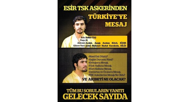 Sputnik'in haberine göre, IŞİD, Suriye’nin Rakka kentinde Türkçe olarak aylık yayınladığı Konstantiniyye dergisinin son sayısında, geçen sene Kilis sınırında kaçırdığı Iğdır nüfusuna kayıtlı 22 yaşındaki Türk askeri Serter Taş’ın fotoğraflarını yayınladı. IŞİD, Rakka kentindeki bir hapishanede tuttuğu askerle yaptığı röportajı bir sonraki sayıda yayınlayacağını belirtti. Dergide askerle yapılan röportaj konularının başlıklarına da yer verildi.
