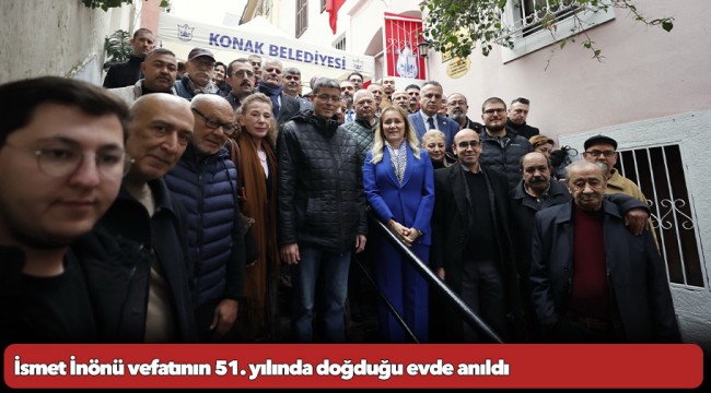 Türkiye Cumhuriyeti’nin ilk Başbakanı ve 2. Cumhurbaşkanı İsmet İnönü, vefatının 51’nci yıldönümünde Konak’ta doğduğu evde anıldı. Konak Belediyesi tarafından İsmet İnönü Anı Evi olarak kente kazandırılan evin önünde gerçekleştirilen anma törenine Konak Belediye Başkanı Nilüfer Çınarlı Mutlu’nun yanı sıra İzmir Büyükşehir Belediye Meclisi CHP Grup Sözcüsü Elvin Sönmez Güler, Atatürkçü Düşünce Derneği (ADD) Genel Başkan Başdanışmanı ve Atatürk Araştırmacısı Yazar Ahmet Gürel, ADD Genel Başkan Yardımcısı Özgür Çınar, ADD İzmir Şubesi Yöneticileri, İzmir 68’liler Platformu Yöneticileri, CHP Konak İlçe Yöneticileri, Konak Belediye Meclisi Üyeleri, sivil toplum kuruluşlarının temsilcileri, muhtarlar ve vatandaşlar katıldı.