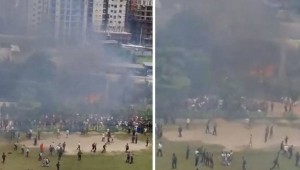 Yapılan bombardıman, Suriye'deki devlet televizyonu sunucusunun arkasında görüldü. Haberleri sunan sunucunun bulunduğu bina sarsıldı. Anlar haber merkezi kameralarına yansıdı
