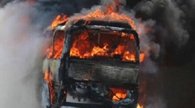NOVA özel televizyon kanalının haberine göre, yolcu otobüsü yol kenarındaki bariyere çarptıktan sonra alev aldı.
