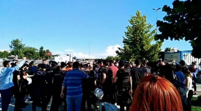 Gözaltılara tepki gösteren kadınlar "Polisin önümüzü kesmesine engel olacağız, buradayız, gitmiyoruz. Arkadaşlarımızı alana kadar buradayız" dediler.