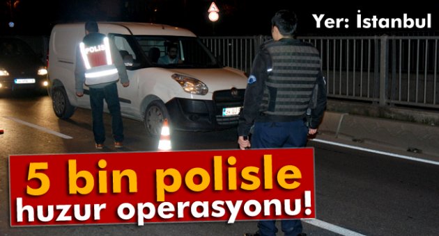 İstanbul'un 39 ilçesinde yaklaşık 5 bin polisin katılımıyla asayiş uygulaması gerçekleştirildi. "Yeditepe Huzur" adı verilen uygulamayı İl Emniyet Müdürü Mustafa Çalışkan yönetirken, polis helikopteri de havadan destek verdi.