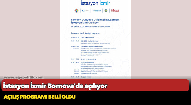 Habitat Derneği Yönetim Kurulu Başkanı Sezai Hazır, İzmir Ticaret Borsası Yönetim Kurulu Başkanı Işınsu Kestelli ve Bornova Belediye Başkanı Dr. Mustafa İduğ’un açılış konuşmalarını yapacağı etkinlik saat 15:30’da Habitat Derneği Genel Sekreter Yardımcısı Halil Gerçek’in yapacağı GGH 2021 Bilgilendirmesi ile başlayacak. Saat 16:00’da Yeni Nesil Girişimcilik Fırsatları semineri ile devam edecek.