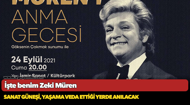 24 Eylül 1996’da TRT İzmir Televizyonu'nun Kültürpark'taki stüdyolarında kendisi için düzenlenen tören sırasında geçirdiği kalp kriziyle hayata gözlerini yuman Türk müziğinin “Sanat Güneşi” Zeki Müren, vefatının 25. yıldönümünde özel bir konserle anılacak. İzmir Büyükşehir Belediyesi’nin düzenlediği konser, 24 Eylül Cuma akşamı 20.00’de İzmir Sanat’ta olacak. Gecede Erol Gönüldaş ve saz arkadaşları eşliğinde Yeşer Karasu, Aslı Erzurumlu ve Göksenin Çakmak solist olarak yer alacak. Zeki Müren şarkılarının seslendirileceği konser ücretsiz olacak. Giriş için QR kodlu biletler [email protected]’den alınabilir.