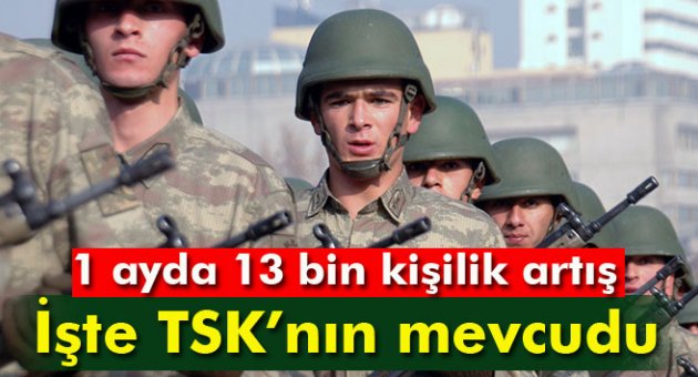 Genelkurmay’ın en son 7 Aralık’ta açıkladığı personel mevcuduna kıyasla en çok artış, 9 bin 90 kişilik artışla erbaş ve erlerde yaşandı. Uzman personel sayısı ise 3 bin 336 kişi arttı. Türk Ordusu’nun toplam personel sayısı son 1 ayda 13 bin 4 kişi arttı.