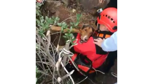 İzmir Büyükşehir Belediyesi İtfaiye Dairesi Başkanlığı ekipleri Tire’de kuyuya düşen ve dört gündür orada olduğu tahmin edilen Osman adlı av köpeğini kurtardı.