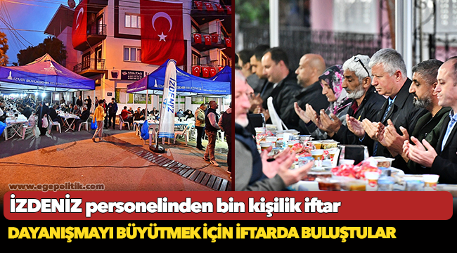 personeli Ramazan ayında dayanışmayı büyütmek için iftar verdi. Bin kişilik iftar, 31 Mart’ta Hakkari Irak sınırında arama-tarama faaliyetleri sırasında dengesini kaybederek Hacıbey Çayı’na düşerek şehit olan Piyade Asteğmen Abdullah Kürşat Kupşen’in ailesinin yaşadığı Buca Yeşilbağlar Mahallesi’nde düzenlendi. İftara, İzmir Büyükşehir Belediyesi Başkan Vekili Mustafa Özuslu, İZDENİZ Yönetim Kurulu Başkanı Osman Hakan Erşen, İZDENİZ Genel Müdürü Ümit Yılmaz da katıldı. Şehit Piyade Asteğmen Abdullah Kürşat Kupşen’in annesi Necla Kupşen, babası Fikret Kupşen ve mahalleliler oruçlarını dualar eşliğinde açtı.