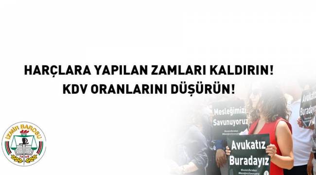 İzmir Barosu olarak avukatlık hizmetlerinden alınan KDV oranının düşürülmesi için birçok çalışma ve görüşme yapmakta iken, 07.07.2023 tarihli Resmi Gazete'de “Mal ve Hizmetlerde Uygulanan KDV Oranlarının Artırılmasına İlişkin 7346 Sayılı Cumhurbaşkanı Kararı” yayımlanmıştır.