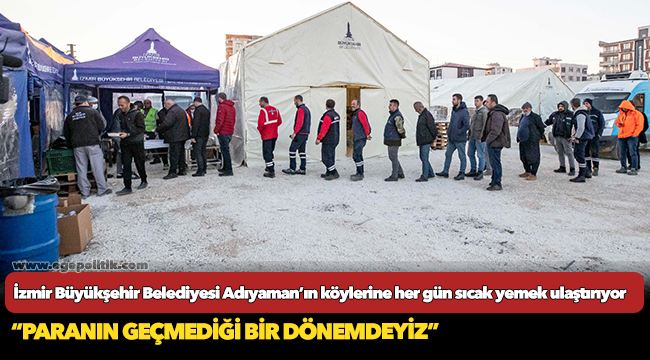 İzmir Büyükşehir Belediyesi Egeşehir Yapı Planlama A.Ş. Genel Müdürü ve Adıyaman Afet Koordinasyon Birimi Koordinatörü Ekrem Tükenmez, “Depremden sonra gördüğümüz temel bir şey var; paranın harcanabileceği hiçbir nokta yok. Paranın geçmediği bir dönemdeyiz buralarda. Bu nedenle insanlar paraları olsa da hiçbir şey alamayacak durumdalar. Dolayısıyla bu insanlarımızın ihtiyaçlarının giderilmesi bizim önceliğimiz. Bunlardan en önemlileri gıda ve barınmadır. Biz bir yandan barınma sorununu çözmek için çalışırken bir yandan da yemeğin sürekliliğini sağlamaya çalışıyoruz. Elimizdeki 7 mobil araçla, aşevimizden aldığımız sıcak yemeği köylerde dağıtıyoruz. Yemeğin yanı sıra gıda ve hijyen paketi ulaştırıyoruz” diye konuştu.