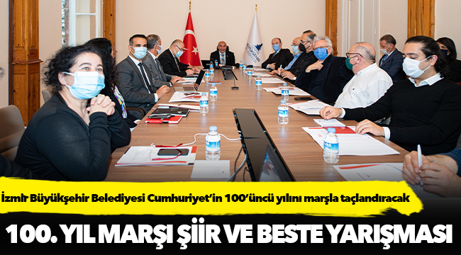 İzmir Büyükşehir Belediyesi, Cumhuriyet’in kuruluşunun 100. yılında “100. Yıl Marşı Şiir ve Beste Yarışması” düzenliyor. 100. yıl coşkusuna, heyecanına, Cumhuriyet sevgisine eşlik eden tüm sanatçıları şiir ve beste yarışmasına katılmaya davet eden Başkan Soyer, “Atatürk'ün bize armağanı Cumhuriyetimizi gelecek kuşaklara 100. yıl marşıyla anlatalım” dedi.