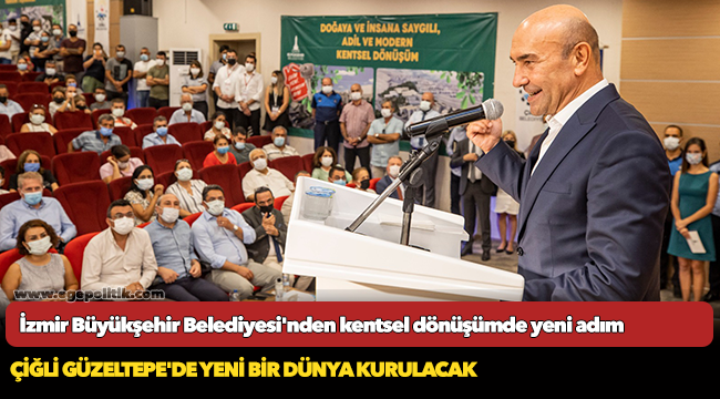 Çiğli'nin Güzeltepe Mahallesi'nde hayata geçirilecek Kentsel Dönüşüm ve Gelişim projesinin tanıtım toplantısında konuşan İzmir Büyükşehir Belediye Başkanı Tunç Soyer, yıllardır kentsel dönüşümü bekleyen mahalle sakinleri için ilk adımı attıklarını, bu nedenle heyecanlı olduğunu söyledi. Soyer, bu projede İzmir Büyükşehir Belediyesi'nin hiç bir kazanımı olmadığını belirterek, “Aksine Büyükşehir'e ait 30 dönüm araziyi de Güzeltepe'nin kentsel dönüşümü için tahsis ediyoruz” dedi.
