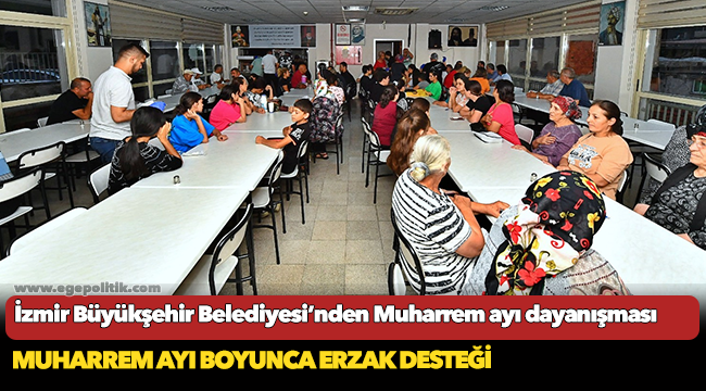 İzmir Büyükşehir Belediyesi Sosyal Hizmetler Dairesi Başkanlığı, Muharrem ayı boyunca İzmir’deki Alevi kültür merkezleri, cemevleri ve ilgili derneklere, oruç açmak için yemeklik ve aşurelik malzeme desteği sağladı. Mutfağı bulunan 5 kültür merkezi, 9 cemevi ve 6 derneğe günlük 7 bin 200 kişilik yemek üretimi yapacak şekilde 12 günlük toplam 86 bin 400 kişilik erzak dağıtıldı. Bunun yanı sıra 3 kültür merkezi, 16 cemevi, 7 derneğe 15 bin 400 kişilik aşure malzemesi dağıtıldı. İzmir Büyükşehir Belediyesi Muharrem ayı kapsamında toplam 101 bin 800 kişilik erzağı yurttaşlarla paylaşmış olacak.